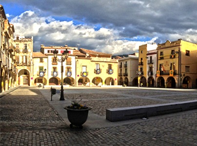 Els anys 1427 i 1428 la vila va ser destruïda per dos terratrèmols i va ser reconstruïda entorn del monestir benedictí de Santa Maria d’Amer, l’església romànica del qual, del segle XII, és, de fa temps, l’església parroquial. A la vila destaca també la plaça major, porticada.
