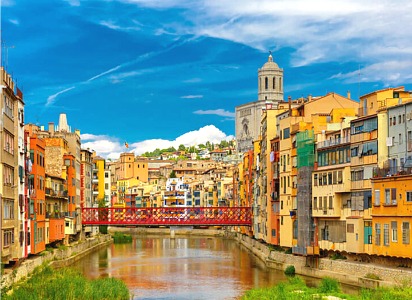 URBANISME I MONUMENTS.- La ciutat té com a eix principal el curs de l’Onyar, que la divideix en dos sectors: el nucli antic i la ciutat moderna. El primer -que s’articula al voltant d’un costerut turó que havia estat murallat- és presidit per la fàbrica de la catedral, que integra estils diversos. Al veí Palau Diocesà hi ha el Museu d’Art de Girona, amb col·leccions importants d’art romànic i gòtic. Altres edificis d’interès de la ciutat antiga són la Pia Almoina (segle XV), l’església de Sant Feliu (gòtica i barroca, amb notables sarcòfags paleocristians), els anomenats banys àrabs, d’època romànica, la capella romànica de Sant Nicolau, l’antic monestir de Sant Pere de Galligants, romànic, que allotja l’interessant Museu Arqueològic, o els antics convents de Sant Domènec i dels jesuïtes, que, amb l’antic Estudi General, han estat recuperats per la nova Universitat de Girona. Resta una part de les antigues muralles romana i medieval, resseguides pels passeigs Arqueològic i de la Muralla.