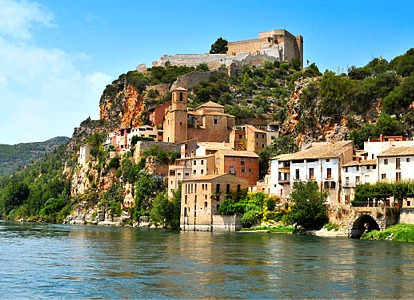La vila es troba al peu d’un turó on s’alça el notable castell de Miravet, d’origen templer (seu de l’orde fins al 1308) i dels Hospitalers (des d’aquella data fins al 1833), força ben conservat el seu recinte, principalment medieval, on cal destacar la seva església romànica, la sala capitular, els dormitori, les places de la Sang i d’Armes i la presó del Príncep de Viana, fill de Joan II el Sense Fe. El nucli antic de la vila (Vila Vella) ha estat molt restaurat. L’església parroquial de la Nativitat de la Mare de Déu és barroca. Al nord-est del nucli hi ha el barri de les Ferreries.