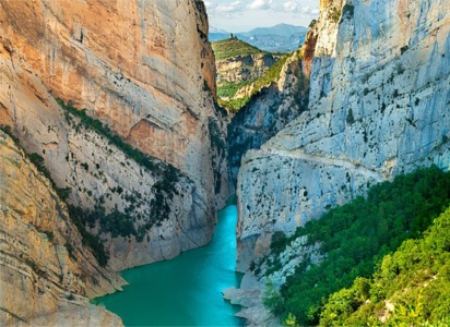 És un dels més espectaculars fenòmens d’erosió fluvial de la xarxa pirinenca en travessar perpendicularment les serres exteriors del Prepirineu. Al sud s’hi troba el pantà de Canelles, que ha fet pujar el nivell hídric.