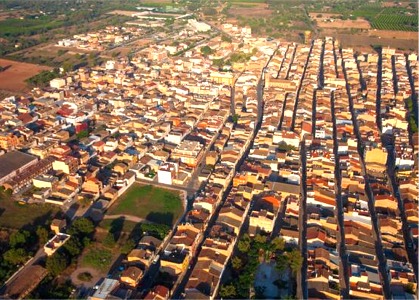 La vila es troba a la plana, a llevant del terme; església parroquial de la Mare de Déu de Lledó.