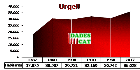 POBLACIÓ.- La població creixé durant la segona meitat del segle XIX i els dos primers decennis del segle XX, i es mantingué pràcticament estacionària fins al 1950, en què inicià una lleugera davallada; es concentra al sector occidental de la comarca, on l’aprofitament de les aigües derivades del canal d’Urgell permet el regadiu. Per contra, hi ha un procés de despoblament continu de la zona de conreus de secà, a tocar de la Conca de Barberà i les Garrigues. Predomina el poblament concentrat; l’any 1996, dels 20 municipis que formen la comarca, 14 no assolien els 1.000 h i únicament tres superaven els 3.000 h (Agramunt, Bellpuig d’Urgell i Tàrrega).