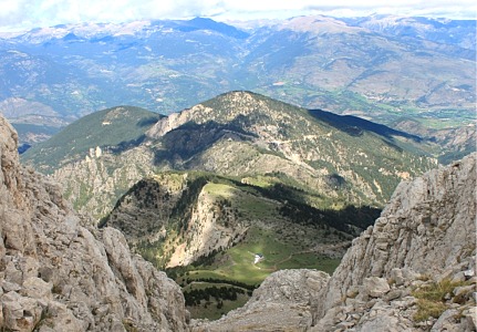 Plana de pasturatge, a Montellà de Cadí, al vessant septentrional del Cadí, damunt la vall de Ridolaina.