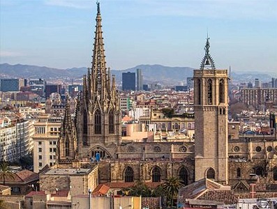 S’hi troba un gran nombre d’edificis d’importància història i artística, tals com, a més de la catedral, el Palau Reial, amb la capella de Santa Àgata, l’Ajuntament, el palau de la Generalitat, el palau del lloctinent, l’Arxiu Municipal, el palau del Bisbe, el Centre Excursionista de Catalunya (que conserva tres de les columnes de l’antic temple romà), i les esglésies de Sant Sever i de Sant Felip Neri (barroques) i de Sant Just (gòtica).