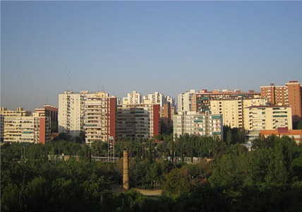 Barri, entre la carretera d’Esplugues i el ferrocarril a Vilafranca del Penedès, a l’única zona verda projectada en el pla del 1953.