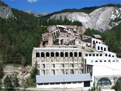 Colònia industrial, al voltant de la fàbrica de ciment Asland, uns 2 km al nord de la Pobla de Lillet.