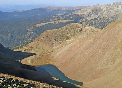 Calm (2.802 m alt) modelada al muntanyam al límit entre les valls de la Llosa i del riu Duran, entre els termes de Bellver de Cerdanya, Meranges i Lles.