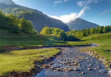 Recorre l’ampla vall de l’Artiga de Lin, despoblada i coberta de boscs, vall d’afaiçonament glacial.