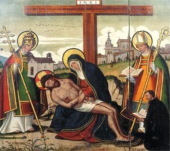 Mates seguí en els seus treballs les formes compositives que trobava en els gravats de Dürer, llavors en molta circulació pertot arreu, i copià també la disposició, per exemple, de la coneguda obra d’Aine Bru sobre el martiri de sant Cugat.