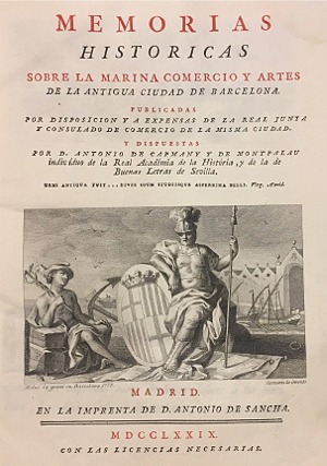 Obra d’Antoni de Capmany de Montpalau. Impresa en quatre volums i sota els auspicis de la Junta de Comerç de Barcelona.