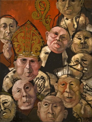 La seva pintura és figurativa, caricaturesca, amb una intenció satírica d’agressivitat molt remarcable.