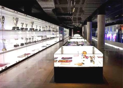 Museu. Pertanyent a la institució esportiva del Futbol Club Barcelona, situat a la tribuna del seu estadi.