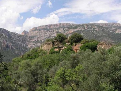 Despoblat, al vessant meridional del Montsec de Rúbies, a l’oest del coll d’Orenga i al peu de la serra de Sant Mamet.