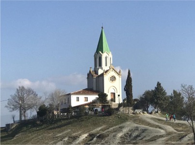 Santuari (el Sagrat Cor i la Mare de Déu de Lurda), situat en un petit turó (696 m), termenal amb Torelló i l’Esquirol.