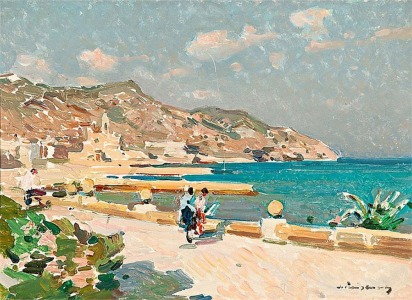 Sobresortí com a paisatgista, influït per Joaquim Mir, i són molt conegudes les seves vistes de Mallorca.
