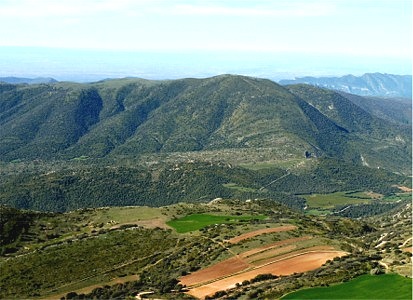 Serra exterior del Pre-pirineus (1.374 m alt), que s’estén en direcció nord-oest – sud-est, transversalment al Montsec de Rúbies.
