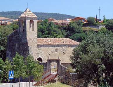 Església, vora el nucli urbà, a la confluència de la riera de Capellada amb el Fluvià.