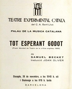 (TEC) Formació teatral. Mostrà sempre un gran eclecticisme a l’hora de programar, i mantingué una gran activitat durant els cinc primers anys d’existència: Homes i no, de Manuel de Pedrolo, Aquí al bosc, de Joan Brossa, Les arrels, d’Arnold Wesker, Els justos, d’Albert Camus, etc.