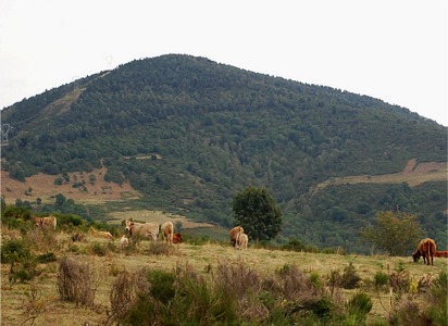 Cim (1.610 m alt) de la serra que separa els tres municipis, entre els colls d’Ares i de Vernadell.