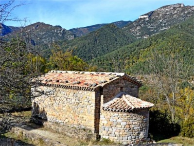 Església, situada al peu dels cingles de la Torre, a la dreta del Bastareny, aigua amunt de la vila.