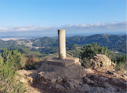 Cim (469 m alt) de l’extrem nord-oriental del massís de Garraf, termenal dels tres municipis.