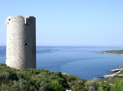 (o del Badun) Antiga torre de defensa, situada a la serra d’Irta (97 m alt), a la costa, al sud del municipi. Fa 5,75 m de diàmetre i 11 m d’altura.