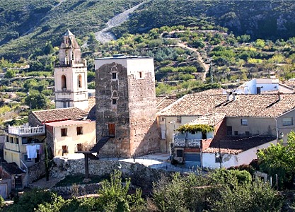 El poble, que comprèn tota la població del municipi, es troba situat al peu de la serra d’Almudaina.