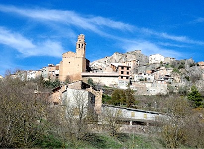 La vila és a l’esquerra del barranc de la Foradada; de l’església parroquial és originari l’important retaule gòtic d’Estopanyà, actualment al Museu Nacional d’Art de Catalunya.