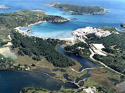 Caseria i platja de la costa de Tramuntana, a la sortida de s’Albufera (anomenada també s’albufera des Grau o des Peix).