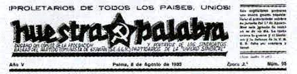 Suspès a mitjan 1932, reaparegué pel febrer de 1934 com a portaveu de la Federació Balear del PCE.