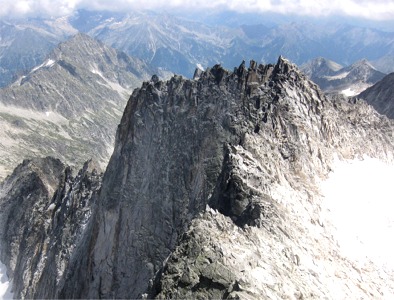 Cim (3.218 m alt) del massís de la Maladeta, entre el pic de les Tempestats i el pic de Russell, al punt on la cresta de les Tempestats es bifurca, tot derivant-se cap a ponent la cresta de Salenques.