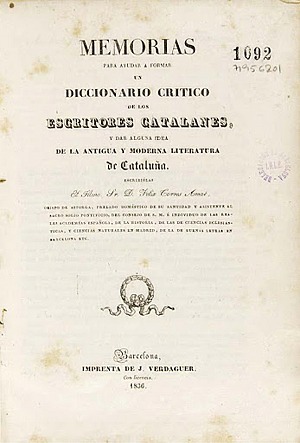 Fou elaborat pels germans Ignasi i Fèlix Torres i Amat, partint, sobretot, dels materials de la Biblioteca Pública Episcopal de Barcelona, de la d’El Escorial i de les reials de Madrid.