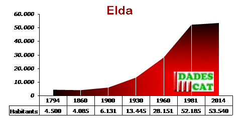 L’aprofitament del sòl per a terres de conreu és molt minso, que es reparteixen equitativament entre secà i regadiu; destaquen els ametllers, les oliveres, els vinyets, els cereals i les hortalisses. El pantà d’Elda, bastit el segle XVII, és fora d’ús. La indústria del calçat, amb gran nombre de fàbriques i indústries subsidiàries, ha estat durant anys la base de l’economia local i la causa del gran corrent immigratori dels darrers anys; la resta de les indústries tenen poc abast: fusta i del moble, cautxú i plàstics, etc. Darrerament l’activitat industrial ha minvat a favor del desenvolupament dels serveis.