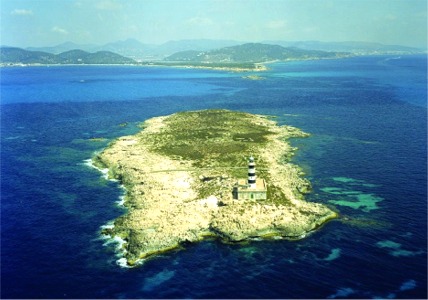 Illot de la costa, davant la punta o banc d’Eivissa. Hi ha un far.