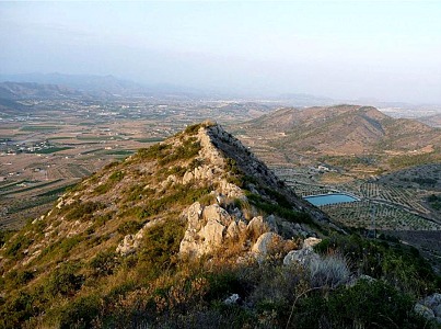 Alineació muntanyosa (718 m alt), aïllada entre els corredors pre-bètics de l’oest del Vinalopó que separa els dos termes.