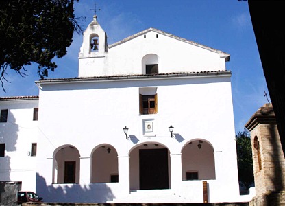 Santuari, al sud de la vila, al vessant septentrional de la serra d’Agullent.