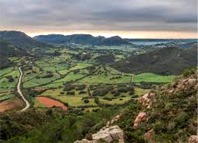 Plana (50-70 m alt) de sa Mitjania, estesa al sud-oest de les serres de s’Enclusa i de Santa Àgueda, al sud de les garrigues de Binissuès i al sud-est de l’extens bosc de la Vall, al límit dels termes de Ferreries (sector drenat pel barranc d’Aljandar) i Ciutadella (drenat pel barranc de sa Fontsanta o de la Vall), travessada de sud-est a nord-oest per la carretera de Maó a Ciutadella.