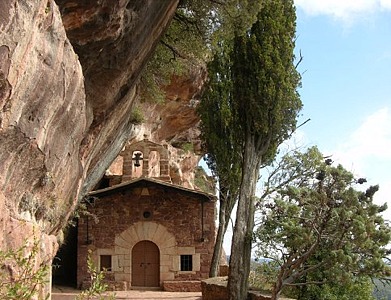 Ermita. L’edifici, del 1570, està incrustat en una cinglera, aprofitant una cova que havia servit ja d’aixopluc a ermitans relacionats amb la tradició eremítica del Montsant.